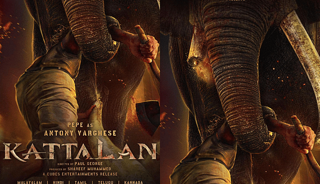 കൊമ്പുവെട്ടി മഴുവുമേന്തി ആനയോട് മല്ലിട്ട് ആന്റണി വർഗീസ്, 'കാട്ടാളൻ' പോസ്റ്റർ