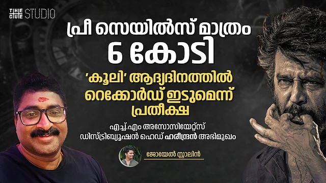 2025 ഓഗസ്റ്റ് 14 ന് രാവിലെ ആറുമണിക്ക് കേരളത്തിലെ തിയറ്ററുകളിൽ മുഴുവൻ 'വിസിൽ പറക്കും'. സമീപകാലത്ത് ഒരു സിനിമയ്ക്കും ലഭിക്കാത്ത പ്രീ ബുക്കിങ്ങുമായാണ് രജനികാന്ത്-ലോകേഷ് കനകരാജ് ടീമിന്റെ കൂലി നാളെ റിലീസിന് ഒരുങ്ങുന്നത്. ജി.സി.സിയിലെ പ്രമുഖ ബിസിനസ് ഗ്രൂപ്പായ എച്ച്.എം അസോസിയേറ്റ്സാണ് ചിത്രം കേരളത്തിലെത്തിക്കുന്നത്. കൂലിയുടെ ആദ്യ ഷോസ് ആരംഭിക്കാൻ മണിക്കൂറുകൾ മാത്രം ബാക്കി നിൽക്കെ സിനിമയുടെ വിശേഷം ക്യു സ്റ്റുഡിയോയോട് പങ്കുവെക്കുകയാണ് എച്ച്.എം അസോസിയേറ്റ്സ് ഡിസ്ട്രിബ്യൂഷൻ ഹെഡ് ഹരീന്ദ്രൻ.