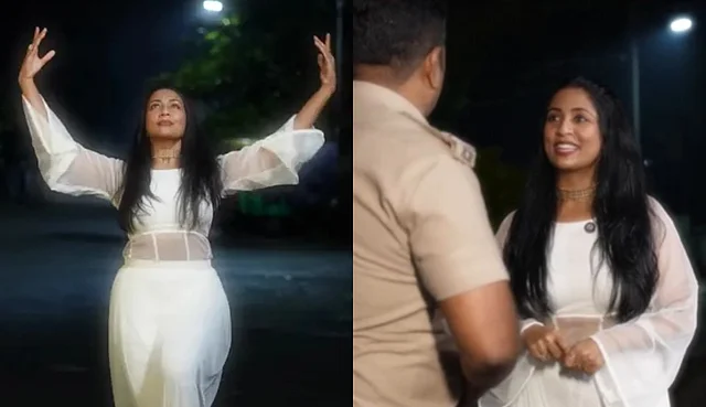 'പാതിരാത്രി' സിനിമയുടെ പ്രൊമോഷന്റെ ഭാഗമായി നടുറോഡില് വെച്ച് റീല് ഷൂട്ട് ചെയ്യുന്ന നവ്യയെ പോലീസ് പിടിക്കുന്നതും അതിനെ തുടര്ന്നുണ്ടാകുന്ന സംഭാഷണങ്ങളും ഒക്കെയാണ് ഈ പ്രൊമോ വീഡിയോയില് ഉള്പ്പെടുത്തിയിരിക്കുന്നത്. നന്ദനം സിനിമയിലെ ബാലാമണി എന്ന കഥാപാത്രത്തെ സ്പൂഫായും ഇതില് ഉള്പ്പെടുത്തിയിട്ടുണ്ട്.