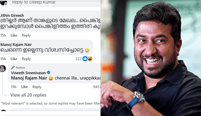 വിനീത് ശ്രീനിവാസന് സംവിധാനം ചെയ്യുന്ന പുതിയ സിനിമയുടെ ഫസ്റ്റ് ലുക്ക് പോസ്റ്റർ ഇന്ന് പുറത്തു വരും. ആദ്യ സിനിമയായ മലർവാടി ആർട്ട്സ് ക്ലബ്ബിന്റെ പതിനഞ്ചാം വാർഷികത്തിലാണ് വിനീത് പുതിയ ചിത്രത്തെക്കുറിച്ച് പ്രഖ്യാപിച്ചത്. തന്റെ പതിവ് രീതികളിൽ നിന്നും വ്യത്യസ്തമായി ത്രില്ലർ ഴോണറിലാണ് ചിത്രം ഒരുങ്ങുന്നതെന്ന് പങ്കുവച്ച പോസ്റ്റിൽ വിനീത് പറഞ്ഞിരുന്നു. പിന്നാലെ പോസ്റ്റിന് താഴെ ആരാധകരുടെ നിരവധി ചോദ്യങ്ങളാണ് വന്നത്. കമന്റുകളിൽ കൂടുതലും അടുത്ത പടം ചെന്നൈ ആണോ എന്ന തരത്തിലായിരുന്നു. ഇത്തരം കമന്റുകൾക്ക് വിനീത് നൽകിയ മറുപടിയാണ് ഇപ്പോൾ വൈറൽ ആകുന്നത്.
