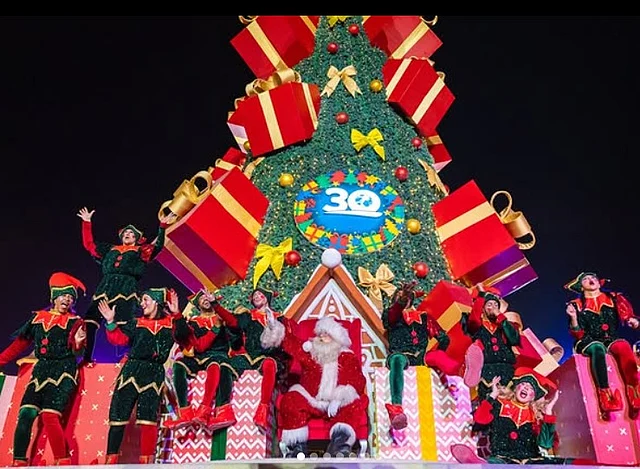 ആഘോഷങ്ങൾക്ക് തുടക്കം കുറിച്ച് ഗ്ലോബൽ വില്ലേജിന്റെ ആകാശത്ത് ഡ്രോണുകൾ വിവിധ ചിത്രങ്ങൾ വരച്ചു. സാന്റയുടെ വരവറിയിച്ച് ആകാശത്ത് ക്രിസ്മസ് പ്രതീകങ്ങൾ മിന്നി മാഞ്ഞു. ട്രീയിൽ സാന്റാക്ലോസ് വിളക്ക് തെളിയിച്ചതോടെ ആകാശത്ത് കരി മരുന്നുകൾ വിവിധ രൂപങ്ങൾ തീർത്തു. സാന്റയ്ക്കൊപ്പം സാങ്കൽപ്പിക കഥാപാത്രങ്ങളായ എൽഫുകളും ആഘോഷത്തിന്റെ ഭാഗമായി. കാത്തു നിന്ന് നൂറുകണക്കിനു കുട്ടികൾക്കും കുടുംബങ്ങൾക്കും കാഴ്ചയുടെ ക്രിസ്മസ് വിരുന്നൊരുക്കിയാണ് സാന്റയും കൂട്ടുകാരും മടങ്ങിയത്. ഇനിയുള്ള രാവുകളിൽ ഗ്ലോബൽ വില്ലേജിലെ പ്രധാന ഫോട്ടോ സ്പോട്ടായി ഈ കൂറ്റൻ ക്രിസ്മസ് ട്രീ മാറും.