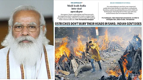 ‘ഒട്ടകപ്പക്ഷി സ്വന്തം തല മണ്ണില് പൂഴ്ത്തില്ല, എന്നാല് ഇന്ത്യന് ഗവണ്മെന്റ് അത് ചെയ്യും,’ എന്നാണ് വാർത്തയുടെ തലക്കെട്ട് . നേരത്തെ ഇന്ത്യയിലെ കൊവിഡ് വ്യാപനത്തില് പ്രധാനമന്ത്രി നരേന്ദ്രമോദിയെ ദി ഓസ്ട്രേലിയന് വിമര്ശിച്ചിരുന്നു. മോദി ഇന്ത്യയെ സമ്പൂര്ണ്ണ നാശത്തിലേക്ക് നയിച്ചു എന്ന തലക്കെട്ടോടു കൂടിയായിരുന്നു ദി ഓസ്ട്രേലിയന്റെ ലേഖനം. കുംഭമേള അനുവദിച്ചത്, ആയിര കണക്കിന് പേര് പങ്കെടുക്കുന്ന തെരഞ്ഞെടുപ്പ് റാലികള് നടത്തിയത്, കൊറോണ വൈറസ് വകദേഭത്തെ കുറിച്ചുള്ള വിദഗ്ധരുടെ അഭിപ്രായങ്ങള് അവഗണിച്ചത്, മെഡിക്കല് ഓക്സിജന്റെ ക്ഷാമം തുടങ്ങി നിരവധി വിഷയങ്ങളില് നരേന്ദ്രമോദിയ്ക്കെതിരെ ദി ഓസ്ട്രേലിയന് ലേഖനമെഴുതിയിരുന്നു.