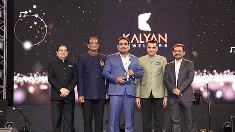 ഇന്ത്യയിലെ രത്ന- ആഭരണ വ്യാപാരത്തിന്റെ പുരോഗതിക്ക് നൽകിയ സംഭാവന കണക്കിലെടുത്ത് കല്യാണ് ജൂവലേഴ്സിന് നല്കിയ ആദരവ്. മുംബൈയില് നടന്ന ഇന്ത്യ ഇന്റര്നാഷണല് ജൂവലറി ഷോ പ്രീമിയറിലാണ് ഇന്ത്യന് രത്ന-ആഭരണ വ്യാപാരത്തിന്റെ പുരോഗതിക്ക് നല്കിയ സംഭാവനകള്ക്ക് ഇൻഡസ്ട്രി ലെജന്റ്സ് അവാർഡ് കല്യാണ് ജൂവലേഴ്സ് എക്സിക്യൂട്ടീവ് ഡയറക്ടര് രാജേഷ് കല്യാണരാമന് ഏറ്റുവാങ്ങിയത്. ജെം ആന്ഡ് ജൂവലറി എക്സ്പോര്ട്ട് പ്രമോഷന് കൗണ്സില് സംഘടിപ്പിക്കുന്ന ഇന്ത്യ ഇന്റര്നാഷണല് ജൂവലറി ഷോ പ്രീമിയര് ഈ മേഖലയിലെ ലോകത്തിലെ രണ്ടാമത്തെ വലിയ മേളയാണ്. മുംബൈയിലെ ജിയോ വേള്ഡ് കണ്വെന്ഷന് സെന്ററിലും ബോംബെ എക്സിബിഷന് സെന്ററിലുമായി നടന്ന ജൂവലറി ഷോയില് 50,000 ത്തിലധികം സന്ദര്ശകരെത്തുകയും 70,000 ത്തിലധികം കോടി രൂപയുടെ വ്യാപാരം നടക്കുകയും ചെയ്തു.