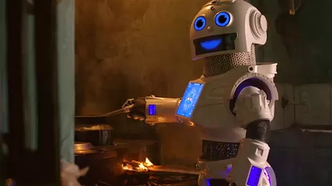 റോബോട്ടിനെ പ്രതിപാദിച്ചുകൊണ്ട് തന്നെയാണ് ടീസറും. റോബോട്ട് അടുക്കളപ്പണി ചെയ്യുന്നതാണ് ടീസറില്. ചിത്രത്തിനായി സ്വന്തമായി രൂപകല്പ്പന ചെയ്തെടുത്ത റോബോട്ടിനെയാണ് ഉപയോഗിച്ചിരിക്കുന്നതെന്ന് രതീഷ് ‘ദ ക്യൂ’വിനോട് മുന്പ് പ്രതികരിച്ചിരുന്നു.സെമി ആര്ട്ടിഫിഷ്യല് ഇന്റലിജന്സോടെ പ്രവര്ത്തിക്കുന്ന റോബോട്ടാണ് ചിത്രത്തില് ഉപയോഗിച്ചിരിക്കുന്നത്. പ്രധാന അഭിനേതാക്കളുടെ പ്രതിഫലത്തോളം തന്നെ റോബോട്ടിനായി ചെലവഴിച്ചിട്ടുണ്ട്.