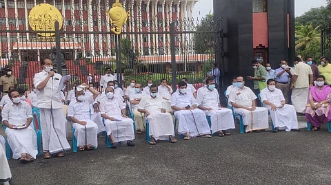 സഭയ്ക്ക് പുറത്ത് പ്രതീകാത്മക സഭ ചേര്ന്നാണ് പ്രതിപക്ഷത്തിന്റെ വ്യത്യസ്തമായ പ്രതിഷേധം.