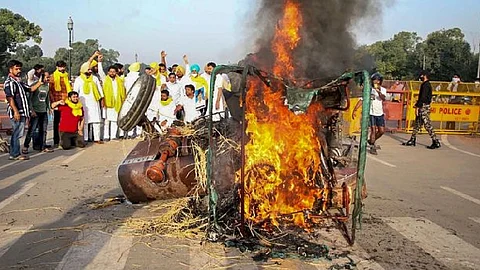 ഇരുപതോളം വരുന്ന ആളുകളാണ് ഇന്ത്യാഗേറ്റിന് മുന്നിലെത്തി പ്രതിഷേധിച്ചത്. രാവിലെ 7.30ഓടെയായിരുന്നു സംഭവം. അഗ്നിശമന സേനയെത്തിയാണ് തീ അണച്ചത്. ട്രാക്ടറിന് തീയിടുന്നതിന്റെ ദൃശ്യങ്ങള് പഞ്ചാബ് യൂത്ത് കോണ്ഗ്രസ് ഔദ്യോഗിക ഫെയ്സ്ബുക്ക് പേജിലൂടെ പങ്കുവെച്ചിരുന്നു.