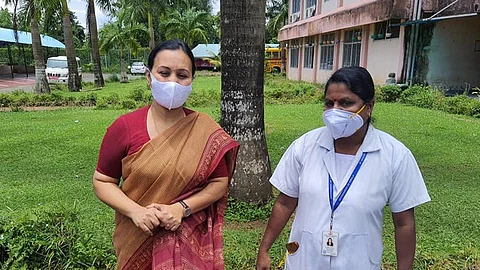 ഏഴര മണിക്കൂറിനിടയിൽ 893 പേർക്ക് വാക്സിൻ കുത്തിവെപ്പ് നൽകിയ ആരോഗ്യപ്രവർത്തകയെ നേരിട്ടെത്തി അഭിനന്ദിച്ച് ആരോഗ്യമന്ത്രി വീണാ ജോർജ്. ചെങ്ങന്നൂർ ജില്ലാ ആശുപത്രിയിലെ ജൂനിയർ പബ്ലിക്ക് ഹെൽത്ത് നേഴ്സായ പുഷ്പലതയെയാണ് വീണാ ജോർജ് നേരിട്ടെത്തി അഭിനന്ദിച്ചത്.