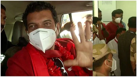 മൂന്ന് മാസത്തെ ഇടവേളക്ക് ശേഷം നിലമ്പൂര് നിയോജകമണ്ഡലം എം.എല്.എ. പി.വി. അന്വര് ആഫ്രിക്കയില് നിന്നും തിരിച്ചെത്തി. ഉച്ചയോടെ കരിപ്പുർ വിമാനത്താവളത്തിലിറങ്ങിയ എം.എല്.എയ്ക്ക് വൻ സ്വീകരണമാണ് പാര്ട്ടി പ്രവര്ത്തകര് നൽകിയത്. നിലമ്പൂരുകാരോട് നന്ദിയുണ്ടെന്നും തിരഞ്ഞെടുപ്പ് പ്രചാരണത്തില് സജീവമാകുമെന്നും അന്വര് പ്രതികരിച്ചു. വാഹനങ്ങളുടെ അകമ്പടിയോടെ നിലമ്പൂര് ചന്തക്കുന്ന് വരെ അന്വറിനെ ആനയിക്കും. വിദേശത്തുനിന്ന് വരുന്നതിനാല് അന്വര് പുറത്തിറങ്ങാതെ സ്വീകരണം ഏറ്റുവാങ്ങി ക്വാറന്റീനിനായി വീട്ടിലേക്കുപോയി.