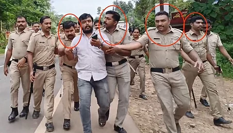 പരിധിവിട്ടപ്പോള് ഞാനും എന്തൊക്കെയോ തിരിച്ചുപറഞ്ഞു. കോണ്സ്റ്റബിള്മാരായ സന്ദീപ്, ജിനീഷ്, അശ്വിന്, വിപിന് എന്നിവരുടെ നേതൃത്വത്തില് പൊലീസ് പൂട്ടിട്ട് ഭീകരവാദിയെ പോലെ എന്നെ നടുറോഡിലൂടെ വലിച്ചിഴച്ച് ഇടിവണ്ടിയിലേക്ക് കൊണ്ടുപോയി. പിന്നീട് അവിടെ നിന്നായി മര്ധനം. കോണ്സ്റ്റബില് സന്ദീപ് കേട്ടാലറക്കുന്ന ഭാഷയില് മുഖ്യമന്ത്രിയെയും പാര്ടി നേതാക്കളെയും അസഭ്യം പറയുന്നു. ഞാനിതിലും വലിയ കളികളിച്ചിട്ടാണ് ഇവിടെയെത്തിയെതെന്ന് വെല്ലുവിളിക്കുന്നു. എന്നെ സസ്പെന്ഡ് ചെയ്താല് എനിക്ക് പുല്ലാണെന്ന് പറയുന്നു. അന്പത്തി രണ്ട് തികഞ്ഞ ഒരു എഎസ്ഐയും ഇടിവണ്ടിയിലുണ്ട്. അങ്ങേരുടെ നെഞ്ചില് നെയിംബോര്ഡില്ല. എനിക്കിനി അത്രയേ സെര്വീസുള്ളൂ നിങ്ങളേക്കൊണ്ട് ആവുന്നത് ചെയ്യൂ എന്ന് സൗമ്യമായി അയാളും പറയുന്നു.