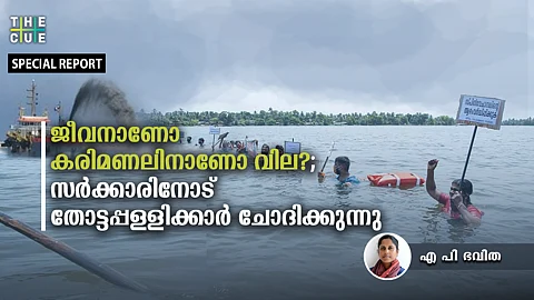 ഇതിന്റെ മറവില് കരിമണല് കടത്താണ് നടക്കുന്നതെന്നാണ് കോണ്ഗ്രസും ബിജെപിയും സമരസമിതിയും ആരോപിക്കുന്നത്. മുതിര്ന്ന കോണ്ഗ്രസ് നേതാവ് വിഎം സുധീരന്റെ നേതൃത്വത്തില് പ്രദേശത്ത് സമരം നടക്കുകയാണ്.