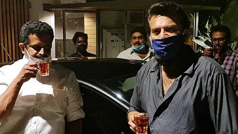 കൊവിഡ് പ്രോട്ടോക്കോള് പാലിച്ച് വീടിനുള്ളില് കഴിഞ്ഞിരുന്ന മമ്മൂട്ടി 275 ദിവസങ്ങള്ക്ക് ശേഷം പൊതുഇടത്തില്. സുഹൃത്തുക്കള്ക്കൊപ്പമുള്ള താരത്തിന്റെ ചിത്രങ്ങള് സമൂഹമാധ്യമങ്ങളില് വൈറലാണ്. നിര്മ്മാതാവും സുഹൃത്തുമായ ആന്റോ ജോസഫിനും പ്രൊഡക്ഷന് കണ്ട്രോളര് ബാദുഷയ്ക്കും ഒപ്പം കലൂരില് തട്ടുകടയില് നിന്ന് സുലൈമാനി കുടിക്കുന്ന ചിത്രങ്ങളാണ് പുറത്തു വന്നത്.