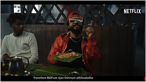 ‘പൊറോട്ടേം ബീഫും ഞാന് തിന്നും അതികാലത്ത്’ എന്നാണ് നീരജ് മാധവൻ പാടിയ റാപ്പിലെ ഒരു വരി. എന്നാല് ‘പൊറോട്ടേം ബി.ഡി.എഫും ഞാന് തിന്നും അതികാലത്ത്’ സബ്ടൈറ്റിലിൽ കൊടുത്തിരിക്കുന്നത്. ബീഫ് എന്ന് സബ്ടൈറ്റിലില് എഴുതാന് നെറ്റ്ഫ്ളിക്സിന് പേടിയാണോ എന്നാണ് സോഷ്യല് മീഡിയയിൽ ഉയരുന്ന ചോദ്യം. തങ്ങള് ദക്ഷിണേന്ത്യക്കാരെ പ്രത്യേകം പരിഗണിക്കുന്നു എന്ന് കാണിക്കാനാണ് നെറ്റ്ഫ്ളിക്സ് പാട്ടൊക്കെ ഉണ്ടാക്കിയത്. പക്ഷേ ഈ ഭാഗമെത്തിയപ്പോള് തൃപ്തിയായി. ബീഫ് എന്ന് വീഡിയോയില് വ്യക്തമായി കേള്ക്കാം. പക്ഷേ രണ്ട് സബ്ടൈറ്റിലിലും അത് ബിഡിഎഫ് ആണ്. വല്ലാത്ത ഗതികേട് തന്നെ നെറ്റ്ഫ്ളിക്സേ നിന്റേത്,’ബീഫിന് ബീഫ് എന്ന് തന്നെ പറയണം നെറ്റ്ഫ്ളിക്സ് ഏമാന്മാരേ, സബ്ടൈറ്റില് മാറ്റി സംഘികളെ പറ്റിക്കുന്നോയെന്നാണ് മറ്റൊരു കമന്റ്. ബീഫ് ഡ്രൈ ഫ്രൈ എന്നാണ് ഉദ്ദേശിച്ചതെന്ന് നെറ്റ്ഫ്ളിക്സ് പറഞ്ഞാലും വിശ്വസിക്കാന് ഒരല്പം പാടാണെന്നും കമന്റുകളിലുണ്ട്.