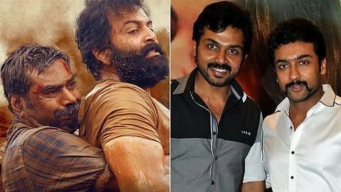 സച്ചിയുടെ സംവിധാനത്തില് ബിജു മേനോനും പൃഥ്വിരാജ് സുകുമാരനും പ്രധാന വേഷങ്ങളിലെത്തിയ അയ്യപ്പനും കോശിയും തമിഴ് പതിപ്പില് സൂര്യയും കാര്ത്തിയും ഒന്നിച്ചെത്തുമെന്ന് റിപ്പോര്ട്ടുകള് പുറത്തുവന്നിരുന്നു. എസ് കതിരേശന് നിര്മ്മിക്കുന്ന തമിഴ് റീമേക്കില് ബിജു മേനോന്റെ റോളില് ശരത്കുമാറും, പൃഥ്വിരാജിന്റെ കഥാപാത്രത്തെ ശശികുമാറും അവതരിപ്പിക്കുമെന്നായിരുന്നു നേരത്തെ തമിഴ് മാധ്യമങ്ങളില് വാര്ത്ത വന്നിരുന്നത്. സൂര്യ-കാര്ത്തി സഹോദരങ്ങള് ബിഗ് സ്ക്രീനില് ഒന്നിക്കുന്ന ചിത്രമായി അയ്യപ്പനും കോശിയും റീമേക്ക് ഒരുങ്ങുന്നുവെന്നായിരുന്നു പിങ്ക് വില്ല, സിഫി ഉള്പ്പെടെ അഭ്യൂഹമായി റിപ്പോര്ട്ട് ചെയ്തത്. ഇക്കാര്യത്തില് ഔദ്യോഗിക സ്ഥിരീകരണം വന്നിട്ടില്ല.